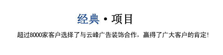 葫蘆島市云峰廣告裝飾有限公司自創(chuàng)立以來(lái),一直致力于廣告牌的設(shè)計(jì),噴繪,制作,安裝、LED工程、亮化工程、數(shù)碼圖文、圍擋制作安裝、三面翻廣告、大型擎天柱廣告、草坪牌、指示牌、雕刻背景墻、燈箱設(shè)計(jì)、標(biāo)識(shí)標(biāo)牌、金屬制品、亞克力字、展臺(tái)展柜、取款機(jī)隔斷、取款機(jī)隔斷等一體化服務(wù),是葫蘆島市噴繪行業(yè)大規(guī)模實(shí)業(yè)公司。